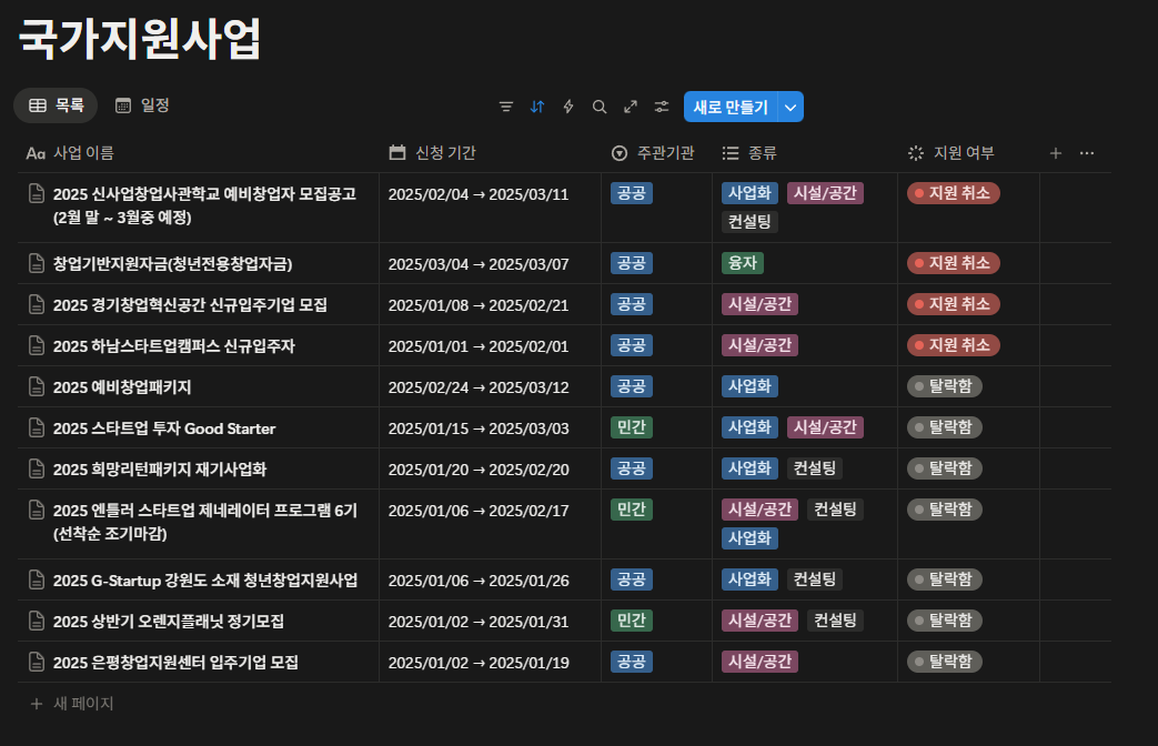 2) 지원이 나오는 사업은 정해져 있다.